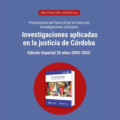 INVITACIÓN ESPECIAL El Dr. Armando Segundo Andruet (h), Director del Área Investigaciones y Ensayos del Centro de Perfeccionamiento Ricardo C. Núñez invita a Ud. muy especialmente a la presentación del Tomo 20 de la Colección Investigaciones y Ensayos titulado: “Investigaciones aplicadas en la justicia de Córdoba – Edición Especial 20