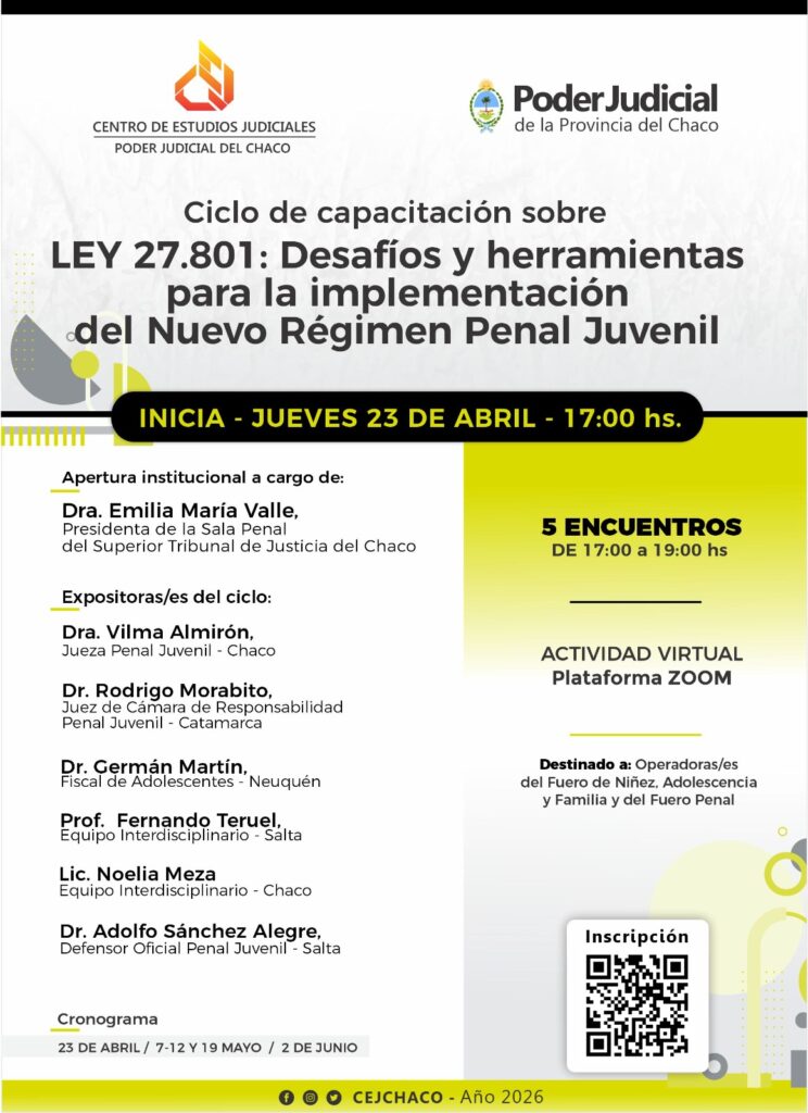 CICLO DE CAPACITACIÓN: NUEVO RÉGIMEN PENAL JUVENIL – LEY 27.801