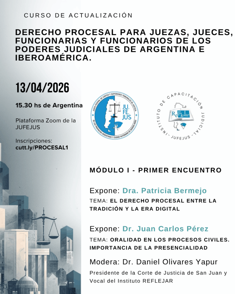 CURSO DE ACTUALIZACIÓN EN DERECHO PROCESAL PARA JUEZAS, JUECES, FUNCIONARIAS Y FUNCIONARIOS DE LOS PODERES JUDICIALES DE ARGENTINA E IBEROAMÉRICA