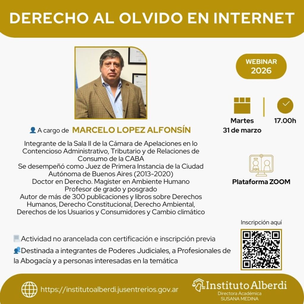 🌐 Más información: https://institutoalberdi.jusentrerios.gov.ar/events/webinar-derecho-al-olvido-en-internet/