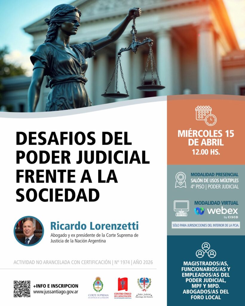 📍Presencial: Poder Judicial de Santiago del Estero. Salón de Usos Múltiples. Piso 4.