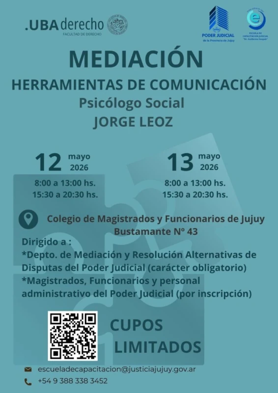 Organizada por la Escuela de Capacitación Judicial “Dr. Guillermo Snopek”, se llevará a cabo la capacitación “Mediación: Herramientas de Comunicación”, destinada a fortalecer las habilidades comunicacionales en el ámbito de la mediación y la resolución alternativa de conflictos. La capacitación estará a cargo del Psicólogo Social Jorge Leoz y se realizará bajo modalidad presencial los […]