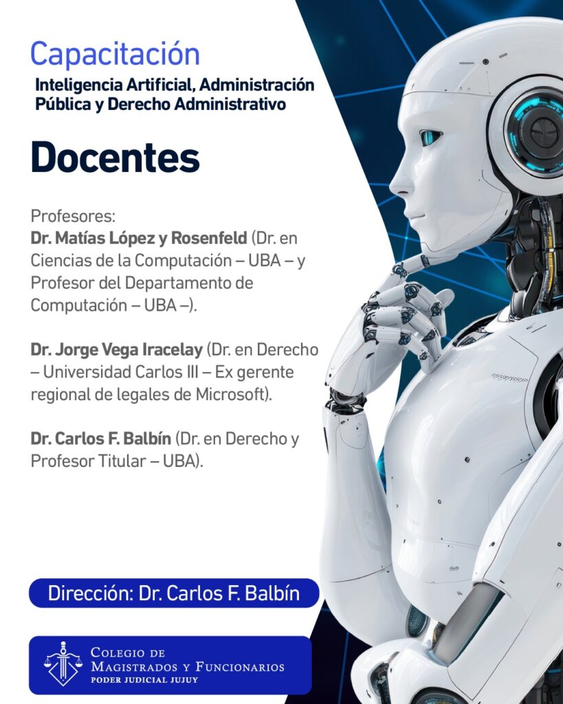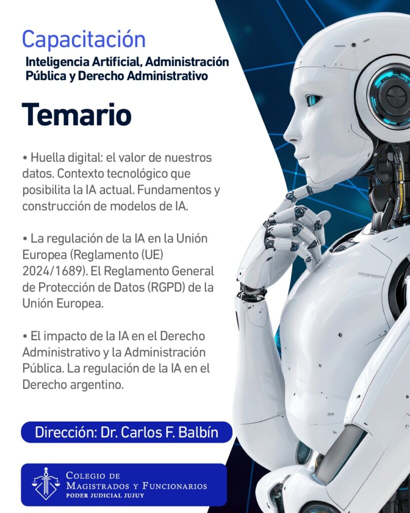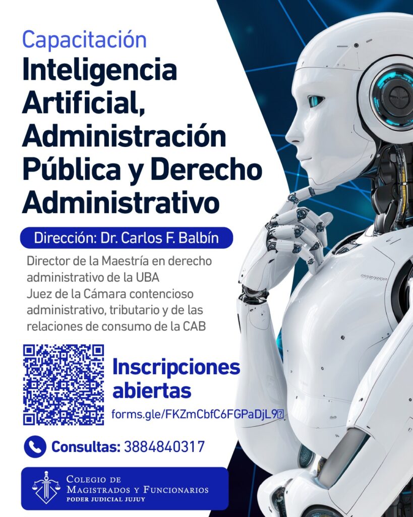 El Colegio de Magistrados y Funcionarios del Poder Judicial de Jujuy invita a participar de la capacitación dirigida por el Dr. Carlos F. Balbín, sobre el impacto de la inteligencia artificial en el ámbito jurídico y administrativo.