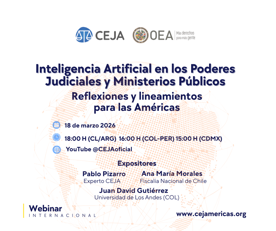 El webinar busca impulsar una conversación informada sobre la forma en que las nuevas tecnologías transforman los sistemas de justicia en América Latina. Se abordarán los desafíos que implica incorporar herramientas de inteligencia artificial y, al mismo tiempo, resguardar estándares de transparencia, debido proceso, rendición de cuentas y protección de derechos fundamentales.