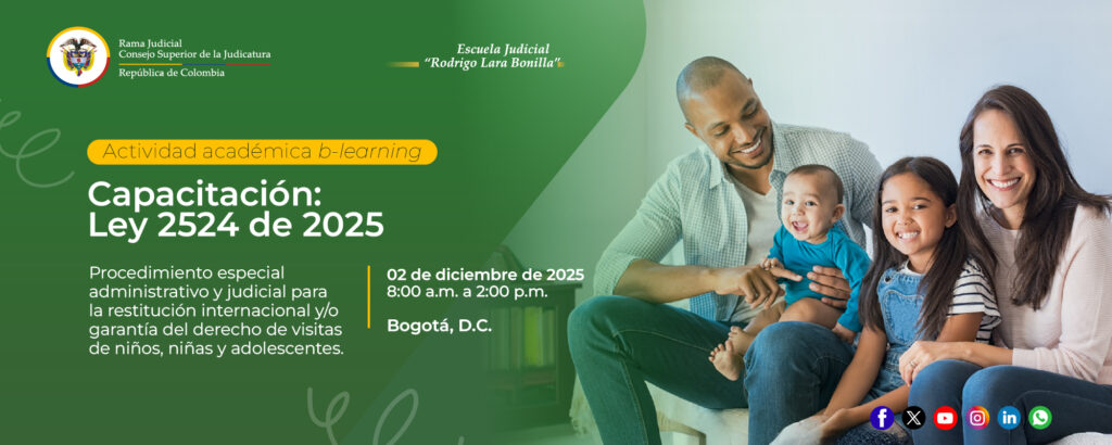 La Escuela Judicial “Rodrigo Lara Bonilla” y el Consejo Superior de la Judicatura convocan al Seminario Regional: “Capacitación en Ley 2524 De 2025 – Procedimiento Especial Administrativo y Judicial para la Restitución Internacional y/o Garantía del Derecho de Visitas de Niños, Niñas Y Adolescentes.”